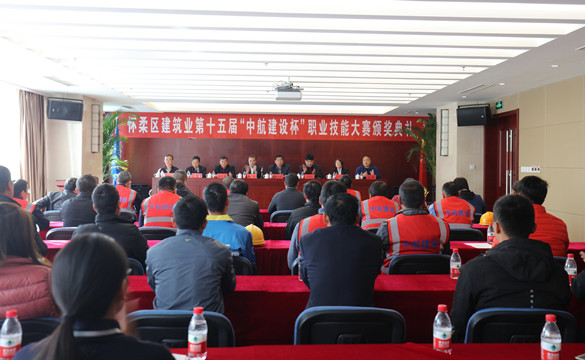 10月25日上午,怀柔区建筑业第十五届“中航建设杯”职业技能大赛颁奖典礼在星空(中国)总部三层多功能厅举行。怀柔区建筑业协会会长、大赛组委会副主任王贵军,区总工会副主席解忠明,集团公司总工程师、大赛组委会副主任陈劲一同参加,同时到场的还有各参赛单位代表及获奖选手共计50余人。