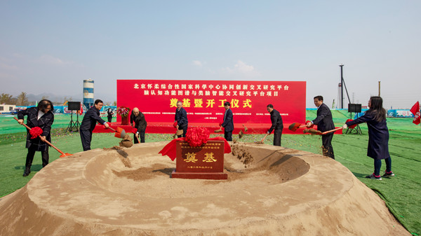 4月10日上午,北京怀柔综合性国家科学中心协同创新交叉研究平台——脑认知功能图谱与类脑智能交叉研究平台项目举行奠基暨开工仪式。怀柔区委书记、科学城党工委书记戴彬彬,怀柔科学城党工委委员、管委会副主任伍建民,中国科学院自动化研究所所长徐波,中国科学院生物物理研究所所长许瑞明,项目监理方、设计方领导,集团公司党委书记、董事长陈先瑞,副总经理、总工程师陈劲共同出席。