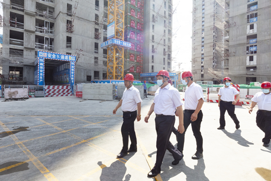 陈董事长首先来到通州区东方厂周边棚户区改造安置房三标段项目察看建设现场,听取进展情况汇报,在仔细了解项目施工点和施工进度后,对项目整体进展给予了充分肯定,并与项目负责人就工程进度、质量保证等进行深入沟通交流,就部分工作提出了具体要求和意见。
