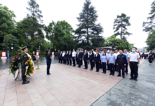 随后培训班一行人来到坐落于小龙山上的遵义烈士陵园。庄严的纪念碑前,集团公司党委书记、董事长陈先瑞带领大家在蒙蒙细雨中敬献花圈,默哀致敬,重温入党誓词,深切表达对英烈的缅怀之情和崇高敬意。